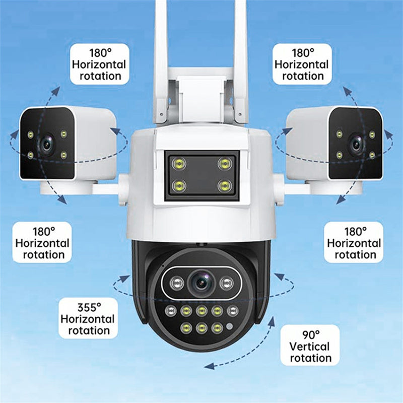 360° FULL COVERAGE PROTECTION - Equipped with three lenses (two fixed-focus and one PTZ), this camera provides complete 360° monitoring with 355° horizontal and 90° vertical rotation, ensuring no blind spots for total security.