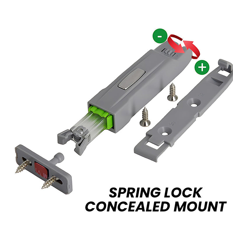 SECURE CLOSING: The spring lock ensures that your cabinet doors stay securely closed, preventing accidental openings. This feature is particularly useful in high-traffic areas and homes with children or pets.